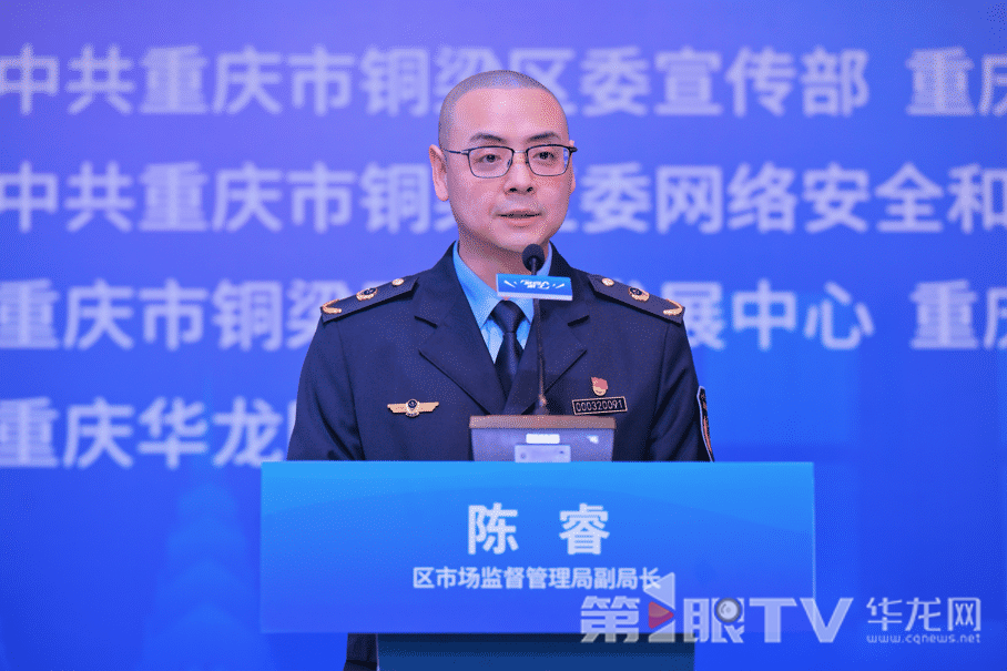 铜梁区市场监管局副局长陈睿讲述维权举措。第1眼TV-华龙网 董静 摄