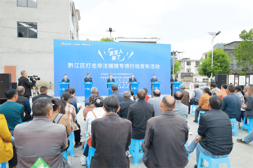 4月26日,黔江区打击非法捕猎专项行动发布活动在该区五里镇举行,黔江区委政法委、区林业局、区公安局、区市场监管局,黔江区五里镇人民政府发言人共同出席发布活动,与护林员、村民、基层干部大家面对面地作政策解读并回答提问。