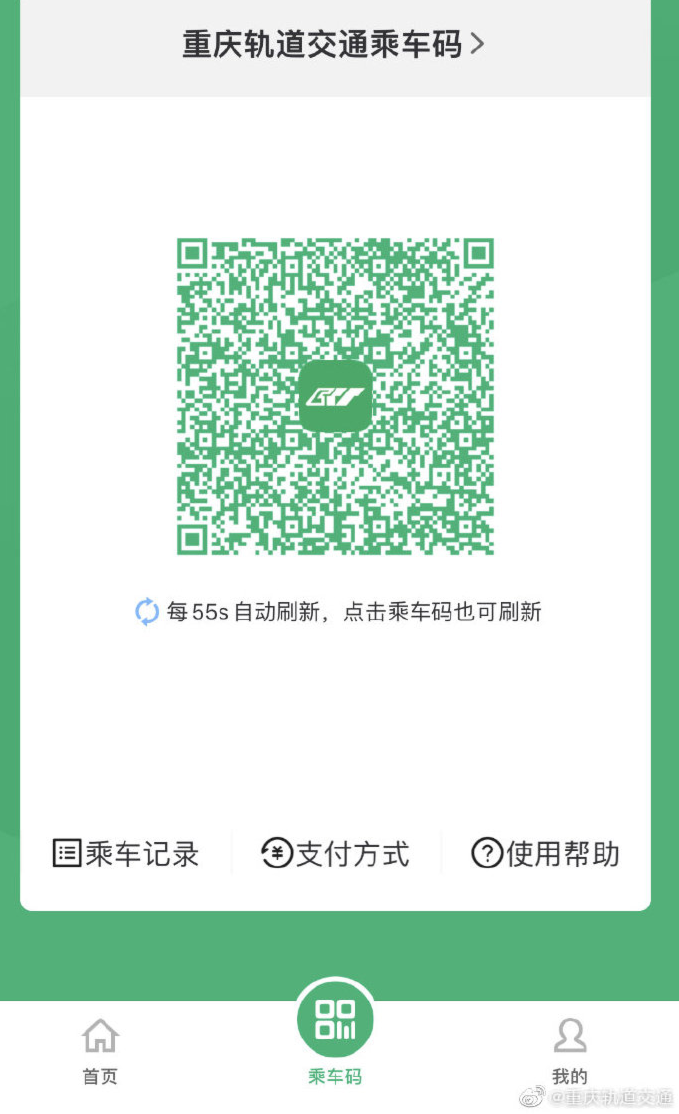 重庆轨道交通乘车码。截图来自重庆轨道交通微博