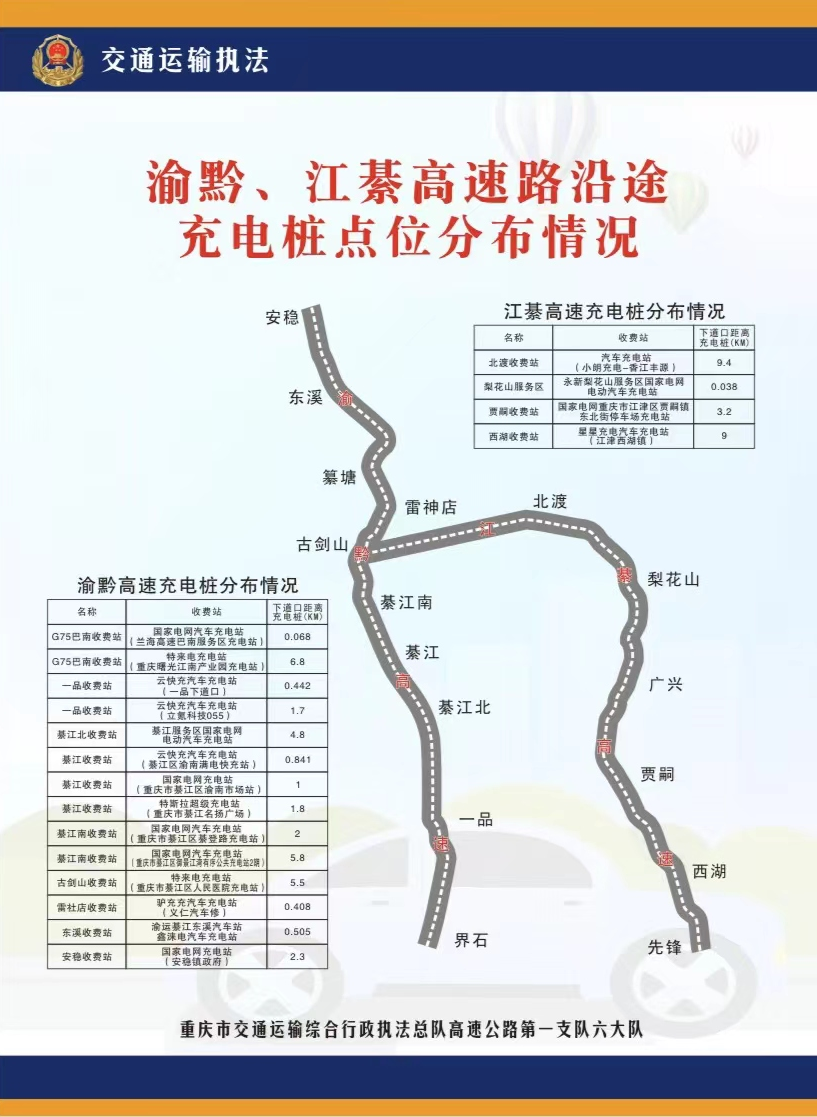 渝黔、江綦高速沿途充电桩点位分布情况。重庆交通执法部门供图