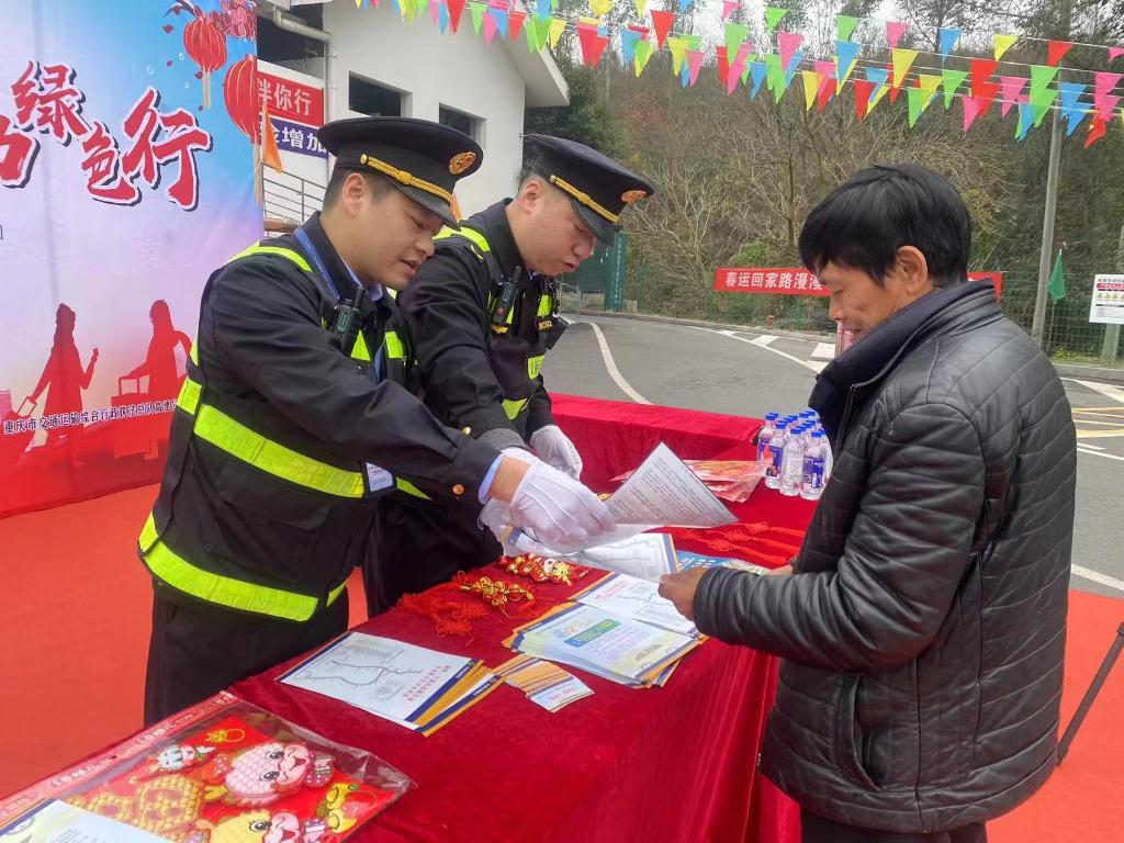 执法队员向过往驾乘人员开展平安出行、文明出行宣传。重庆交通执法部门供图