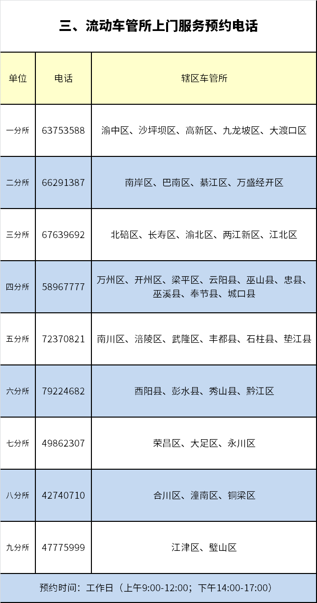 注:具体办理业务项目请向流动车管所现场工作人员咨询。
