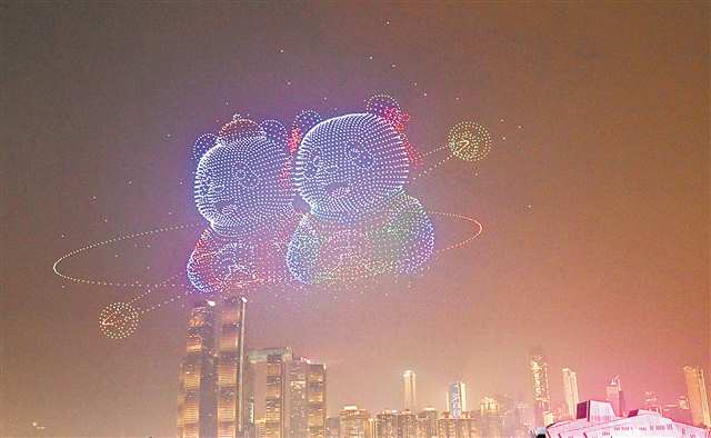 无人机灯光秀展现憨态可掬的熊猫图案。记者 谢智强 摄/视觉重庆