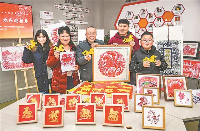 2月6日,大渡口区跃进村街道新时代文明实践所,堰兴剪纸的非遗大师们和学生一起制作马年剪纸。记者 郑宇 摄/视觉重庆