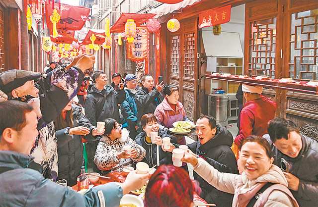 2月7日,3万余名游客的欢声笑语,几乎要托起古镇的青瓦,这里是“非遗贺新春·美食合家欢”的现场。