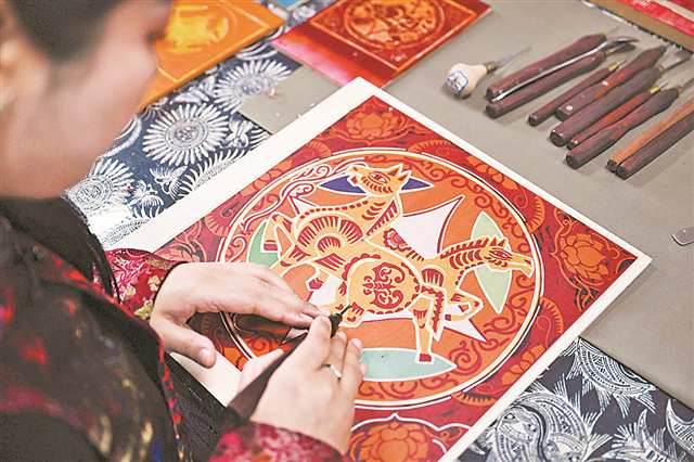 2月6日,綦江农民版画非遗代表性传承人刘月正在木板上雕刻马年图案。首席记者 龙帆 摄/视觉重庆
