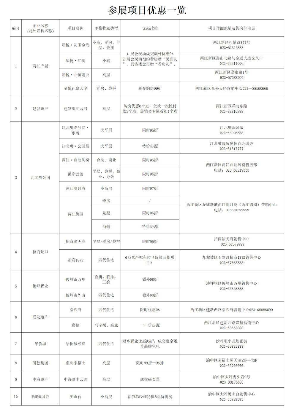 春节返乡置业展销会于2月21日—23日(正月初五至初七),在渝中区朝天门广场隆重举办。凯德集团、昕晖&国咨、招商蛇口、江北嘴公司、两江产城等10家品牌开发企业联袂登场,携21个品质楼盘集中亮相朝天门广场,打造新春置业优选平台。本次展会业态多元丰富,涵盖小高层、花园洋房、中式合院、四代住宅等全品类产品,精准覆盖市内家庭改善居住、市外返乡群众置业等多元化需求,从刚需自住到品质改善,均可“一站式”挑选。