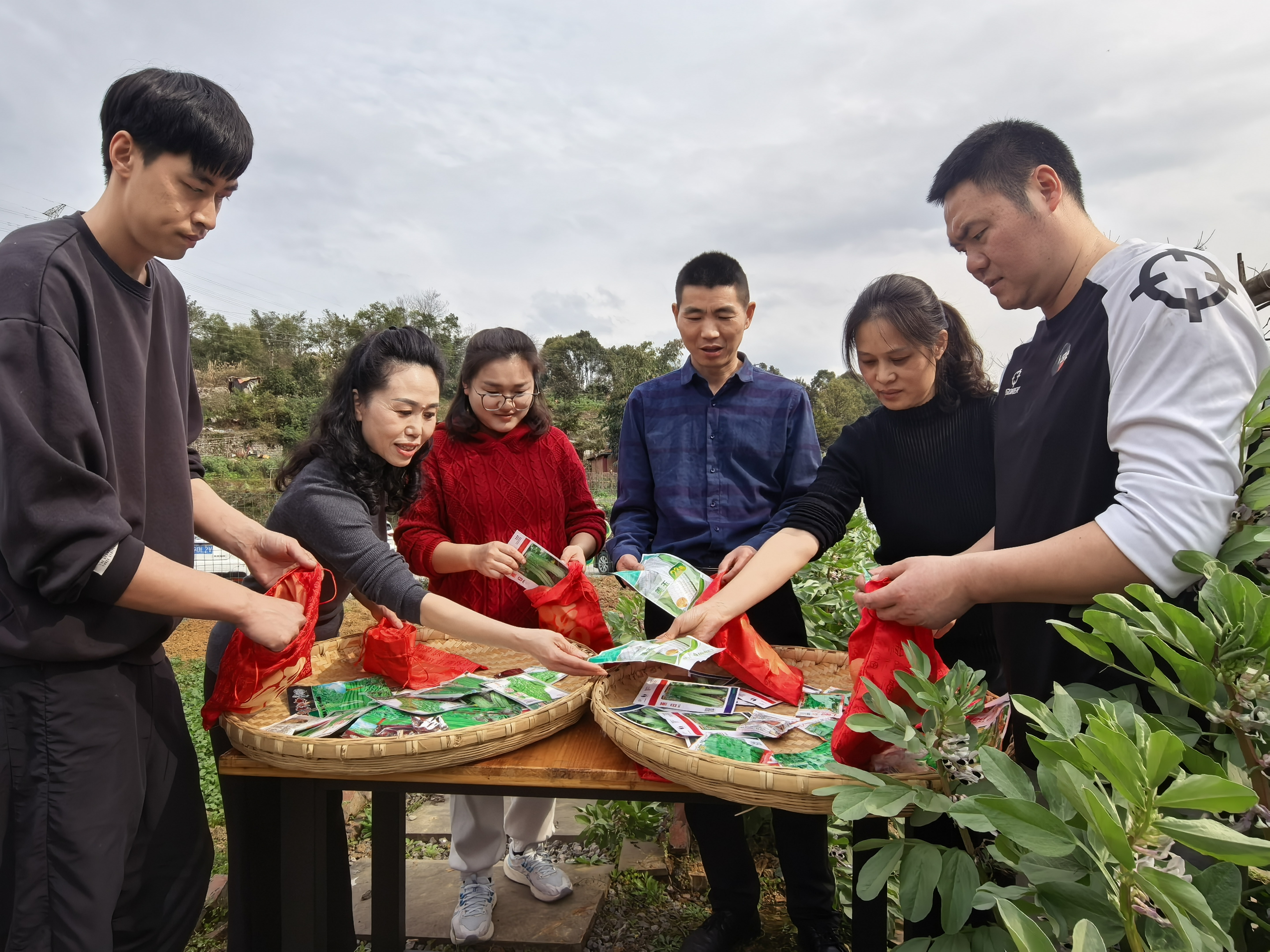 万盛经开区中盛小学,教师们为每个年级的学生分装种子。学校供图