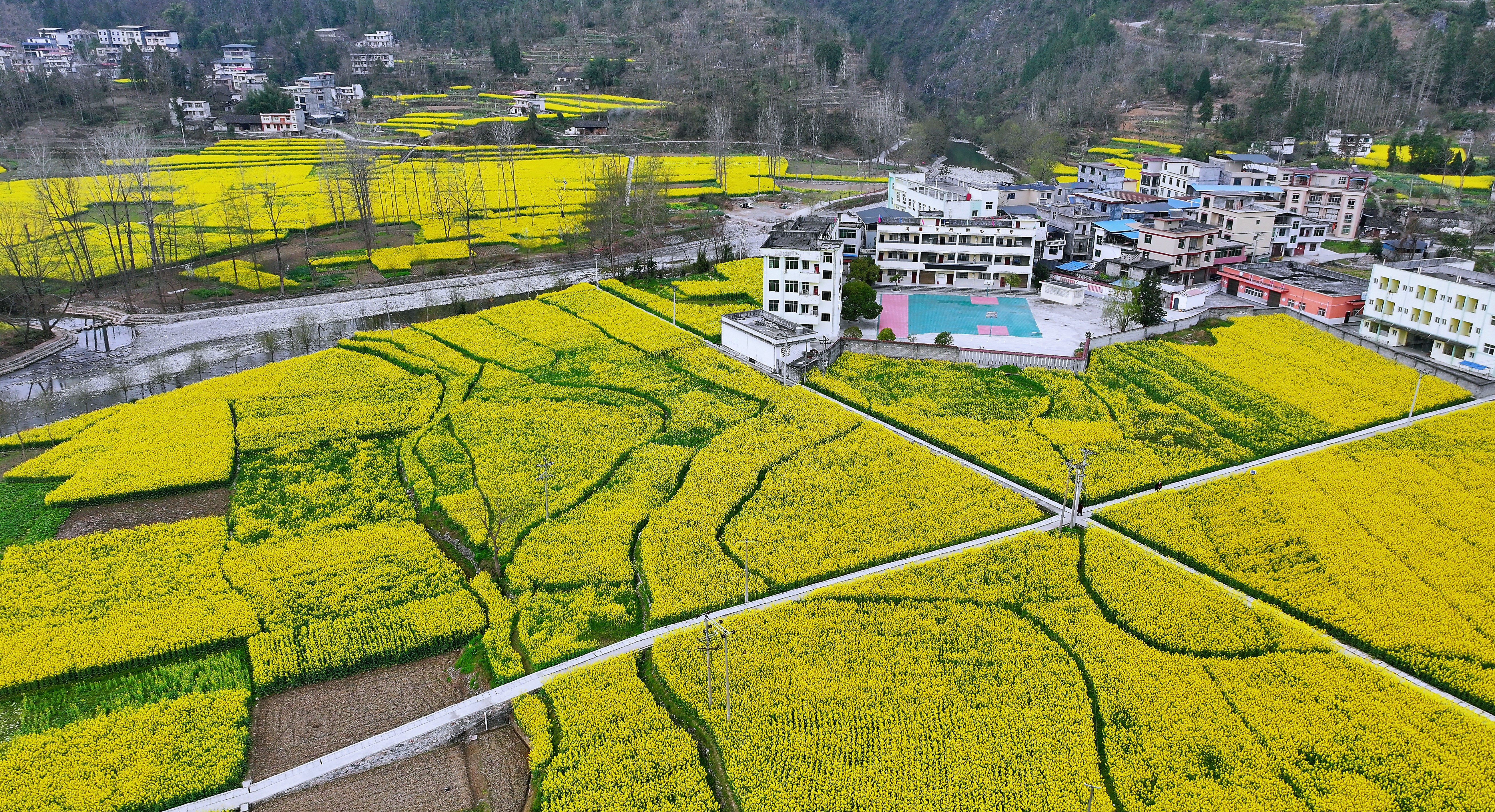春日的潼南崇龛,花“绘”春光,大地鎏金。