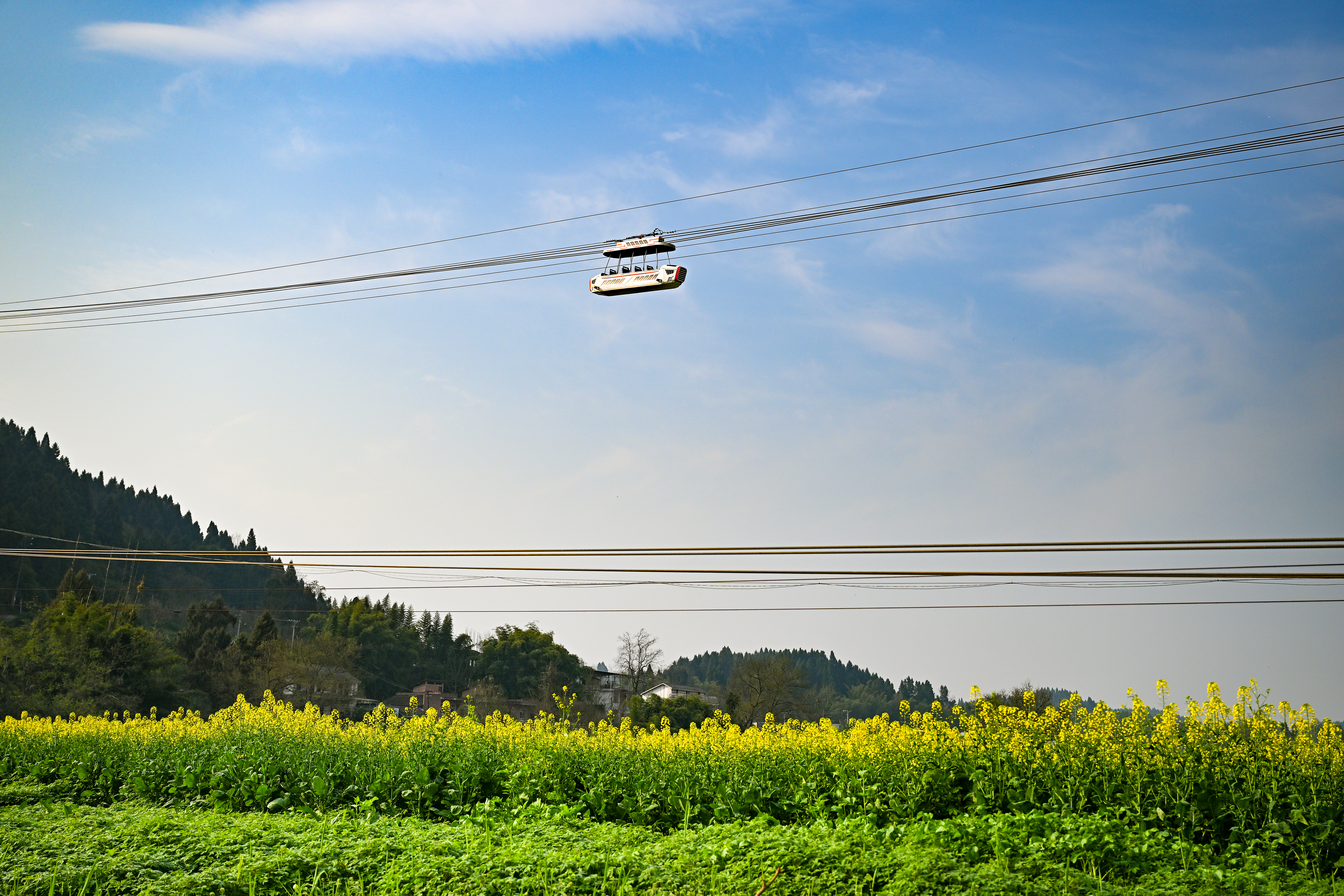 2026年2月27日,潼南区崇龛镇陈抟故里景区,游客们乘坐缆车从油菜花海上经过。记者 张春晓 摄