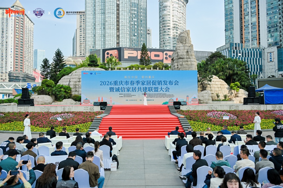3月13日,在重庆春季房地产暨家居展示交易会举办期间,“购在中国·爱尚重庆”2026重庆市春季家居促销发布会暨诚信家居共建联盟大会在观音桥步行街同步举行。