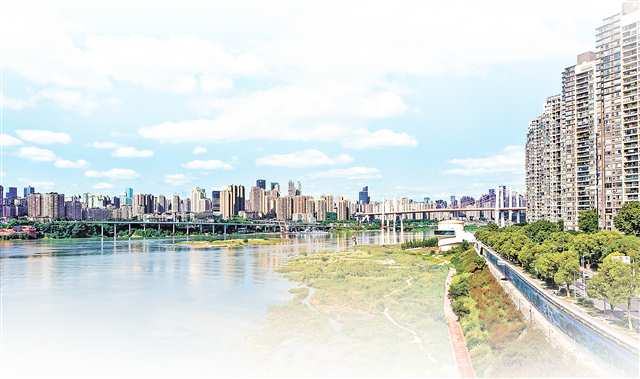 南岸区,蓝天白云下的南滨路雅巴洞江滩公园。(本报资料图片)特约摄影 郭旭/视觉重庆