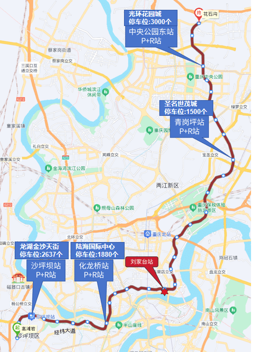 北滨一路(五简路下口至宏滨路路口)、江北城隧道(北滨二路江北城隧道入口至北滨一路江北城隧道出口)、金沙门路(精学街下口至五简路路口)、五简路(北城路路口至北滨一路路口)、北城路(致北路路口至五江路路口)、金源路(金砂支路路口至北滨一路路口)、兴竹路(嘉华大桥进兴竹路路口至北滨一路路口)。