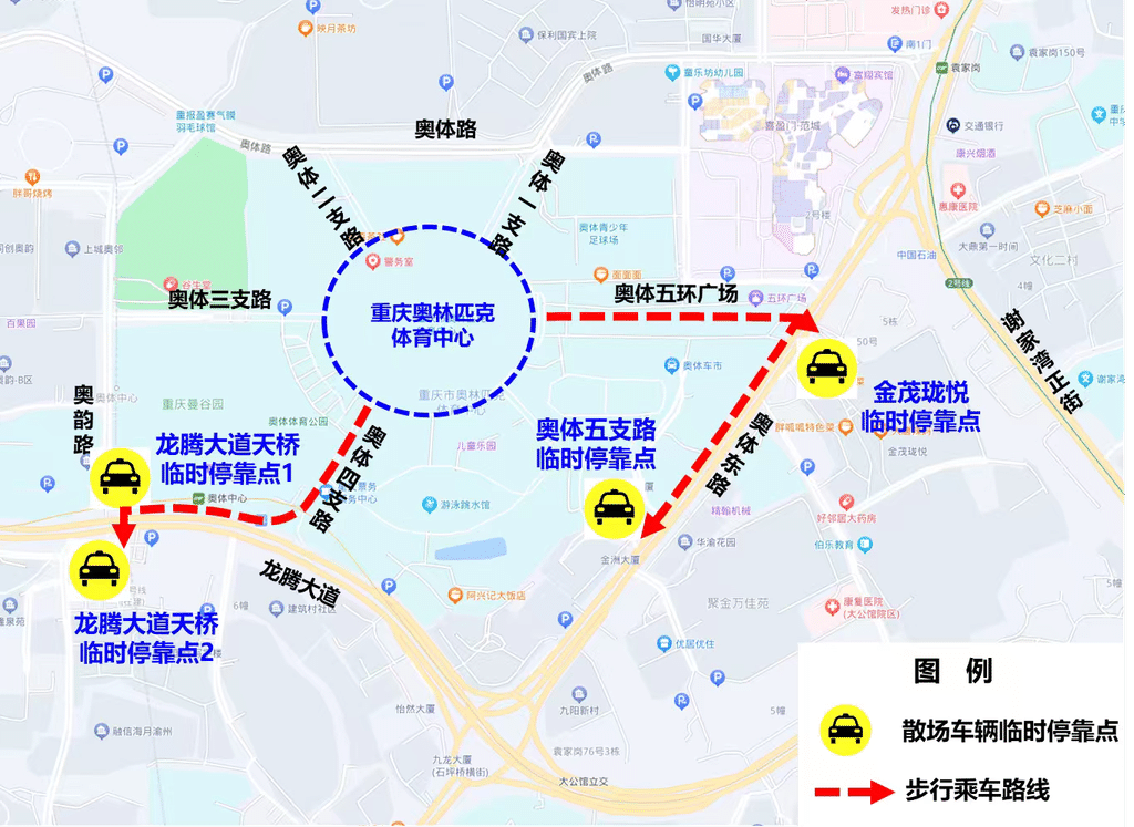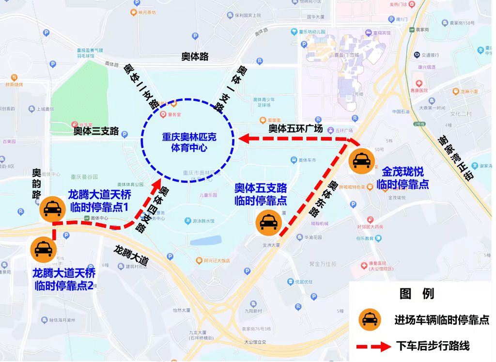 重庆公安机关将根据现场车流、人流情况,采取包括但不限于上述措施以外的其他管制措施,请广大市民提前做好行程安排,行经奥体中心周边道路时服从现场执勤人员指挥;因奥体中心周边停车条件有限,此次活动,奥体中心将不提供任何停车泊位,建议到奥体中心游玩或参加活动的市民朋友乘坐公共交通前往。