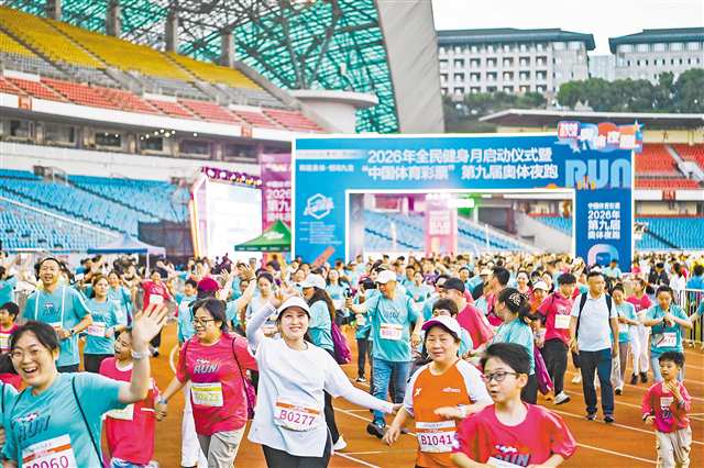4月17日晚,2026第九届奥体夜跑活动在重庆奥体中心体育场火热开跑。