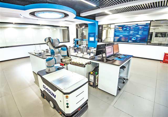 大渡口区重庆国际复合材料股份有限公司,自动化检测分析实验室的机器人正在自主检测。(本报资料图片)