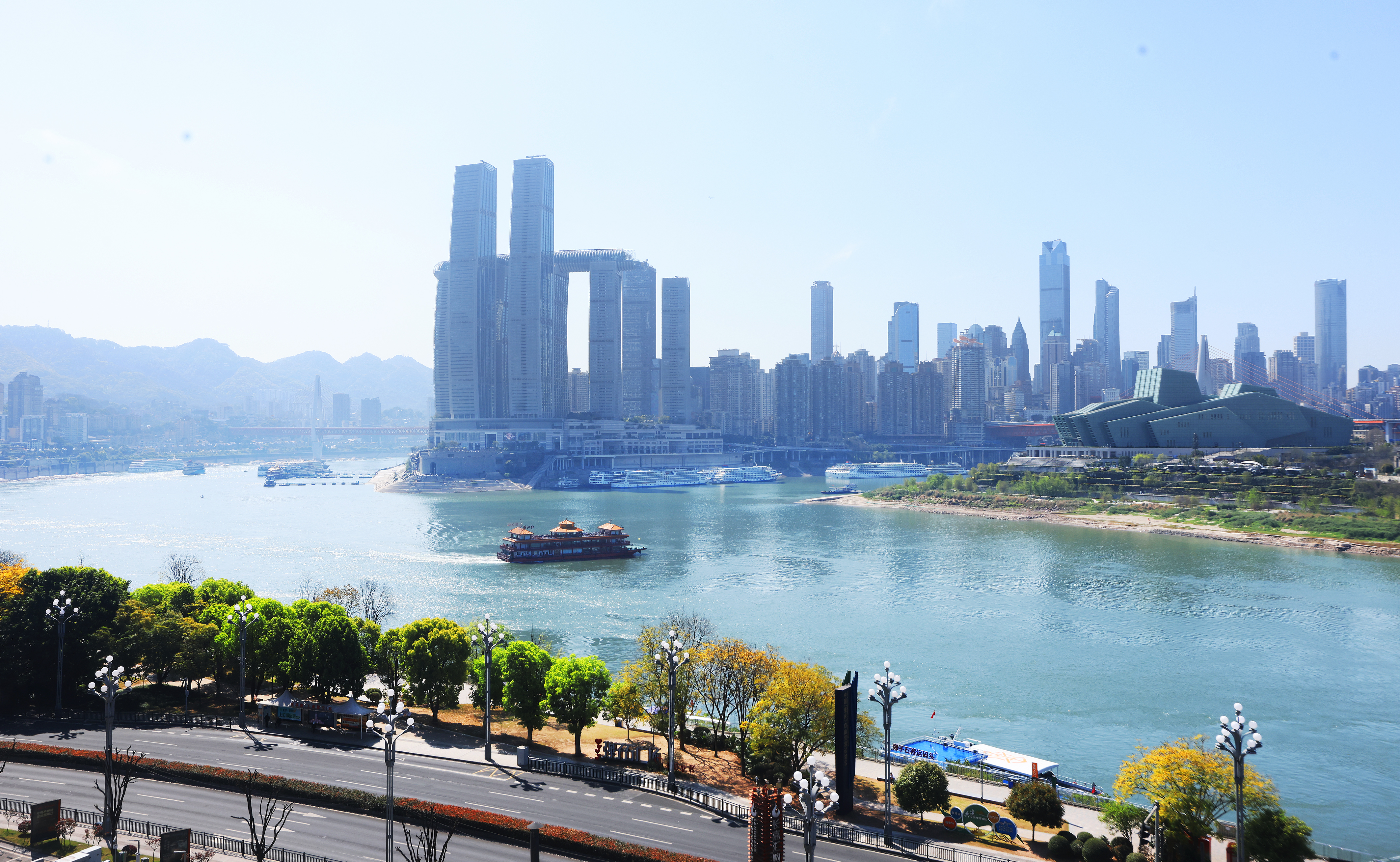 近年来,我市两江四岸绿色生态建设取得丰硕成果,长江和嘉陵江岸更绿水更清,两江春水宛若清澈绿色的飘带与山城鳞次栉比的楼群交相辉映,景美如画。