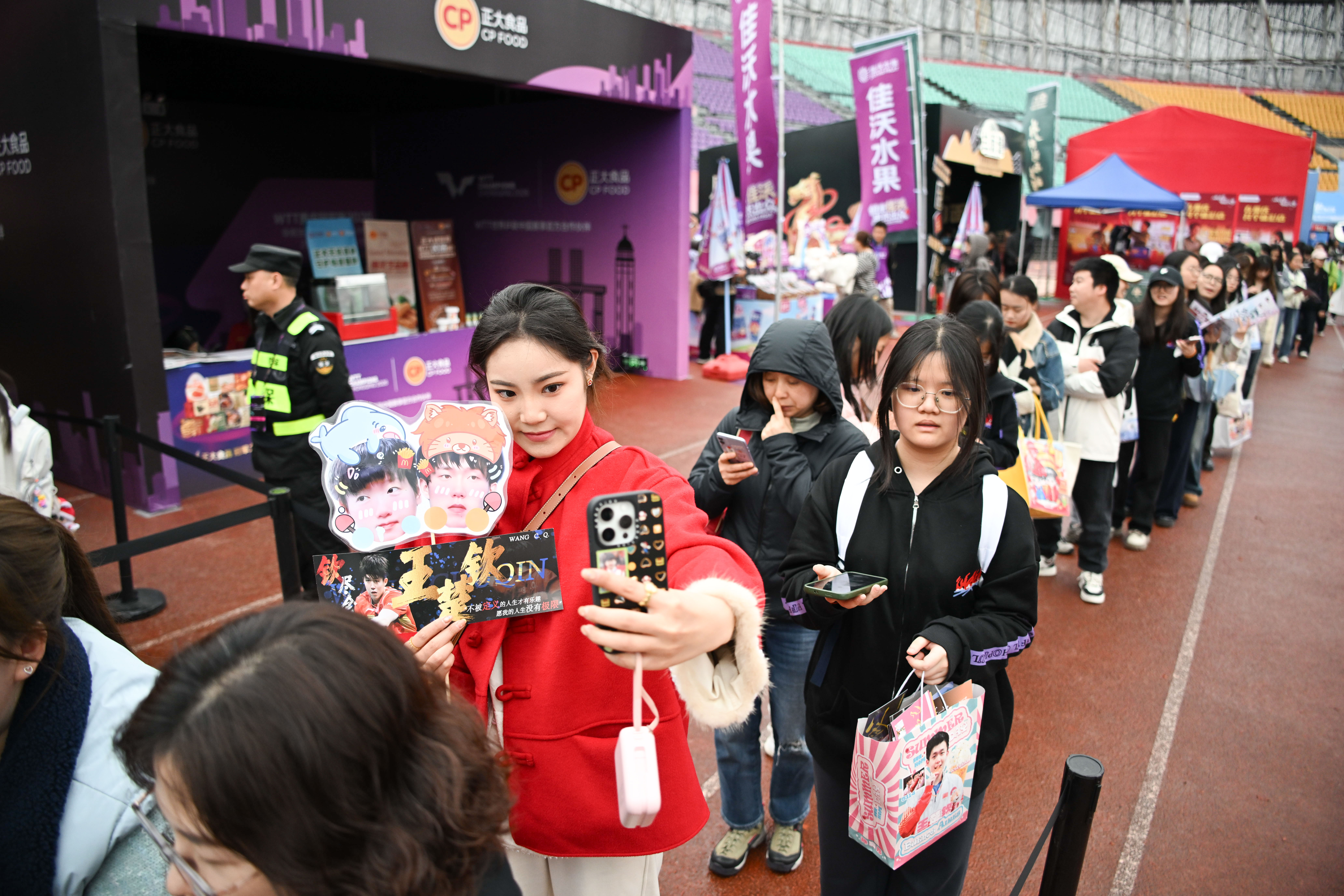2026年3月14日,重庆巴南华熙生物·润百颜ECM中心,球迷排队自拍。记者 谢智强 摄