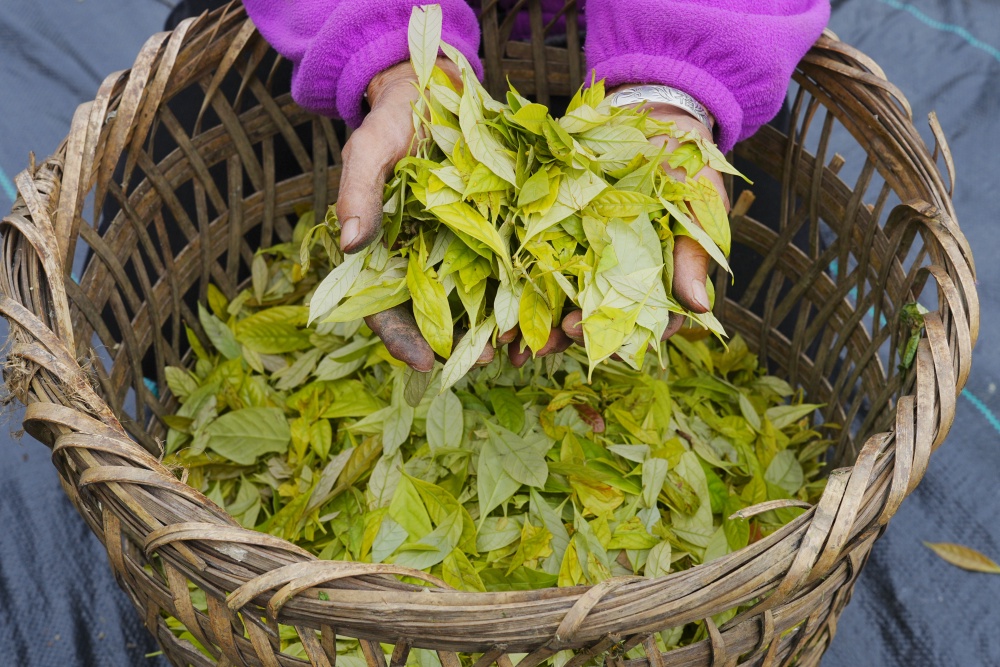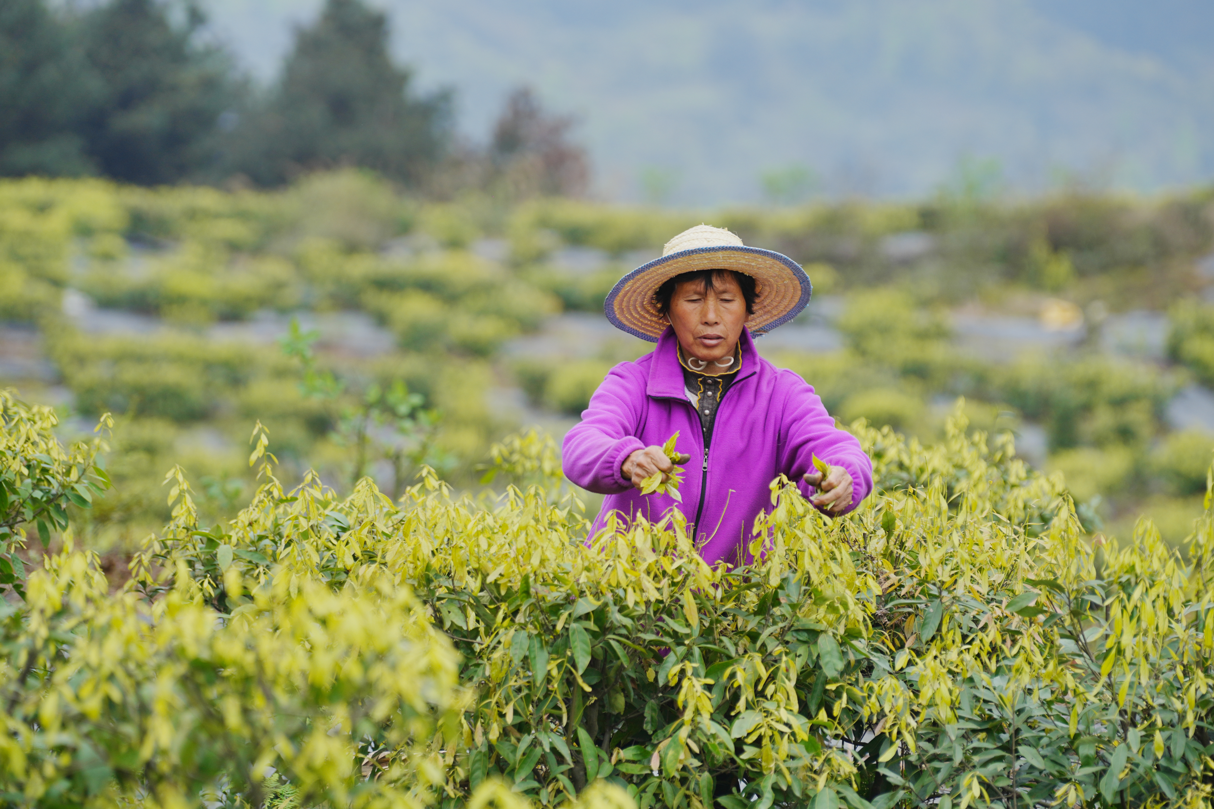 3月22日,北碚区天府镇文星村缙云甜茶标准化种植基地,村民在采摘缙云甜茶。特约摄影 秦廷富
