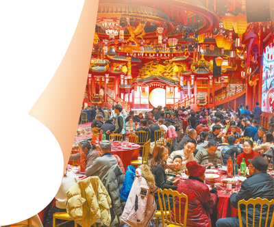 安徽芜湖市繁昌区一家酒店内,顾客们在吃年夜饭。肖本祥摄(新华社发)