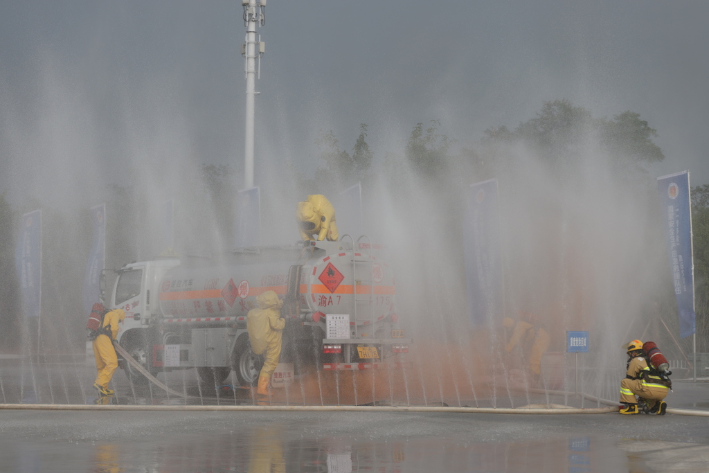 在国家安全生产应急救援队伍“一专多能”建设交流会上,国家危化救援重庆川维队和普光队在展示道路交通事故救援。市应急管理局供图