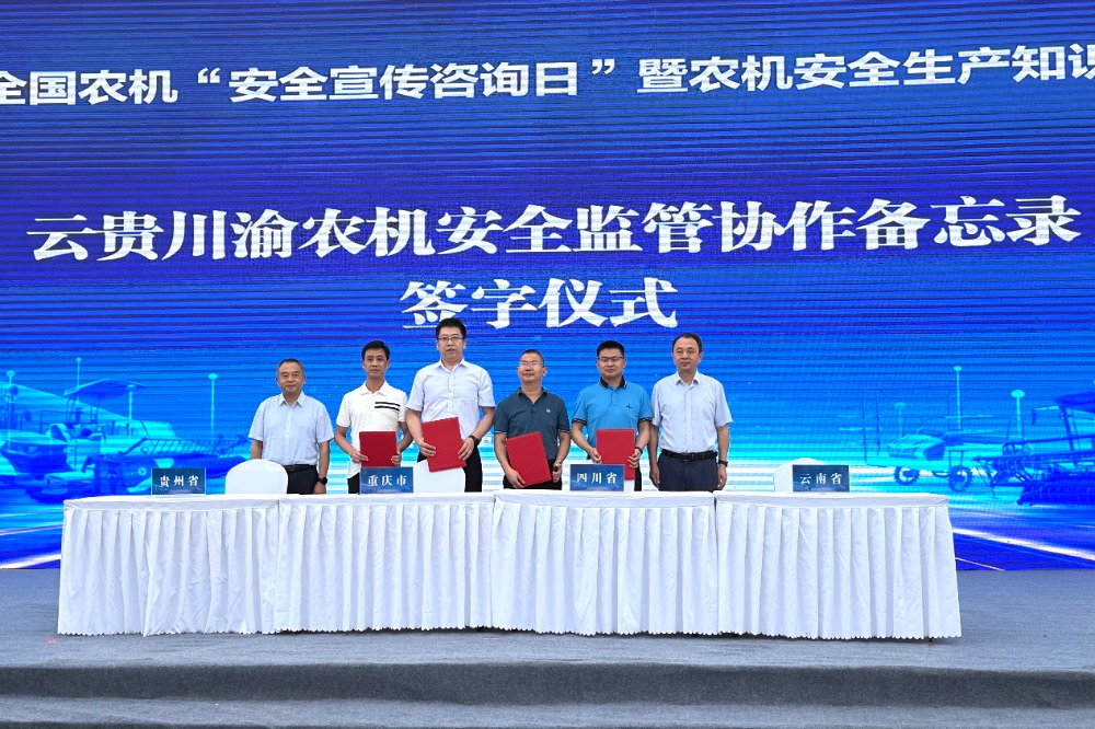 活动现场,云贵川渝四地签订了农机安全监管协作备忘录。四省市将建立多项协作机制,在信息互通、联合执法、人才交流、应急处置、技术支撑等方面深化合作,着力破解跨区域农机安全监管难题,共同提升西南地区农机安全执法监管效能,服务区域农业农村现代化发展。