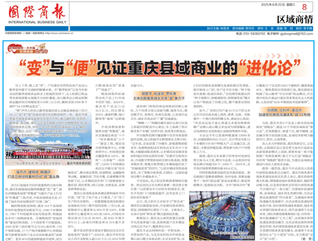 数据显示,重庆龙头商贸流通企业数字化改造率超六成;连锁商超下沉乡镇设立网点达754个,覆盖率达59%。
