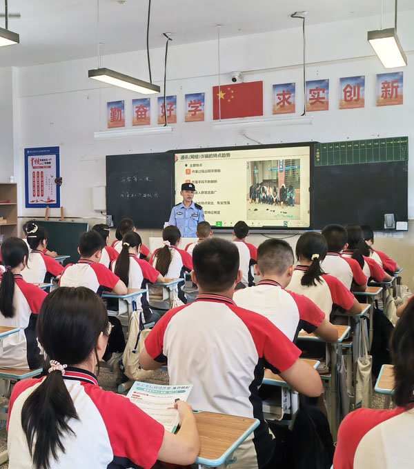 黔江区公安局民警到学校开展开学季反诈宣传活动。(图片由受访者供图)
