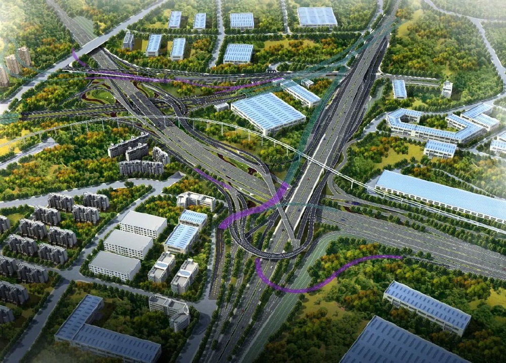 二期工程将新建3条主线总长0.9公里,28条匝道总长10.4公里,2条改线保通道路总长0.3公里。配套建设车行桥梁16座、人行天桥2座、隧道2座、车行地通道6座等设施。