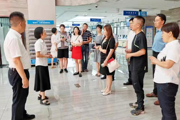 荣昌区行政服务中心相关负责人向“政务服务体验官”介绍中心工作情况。荣昌区政务服务管理办公室供图