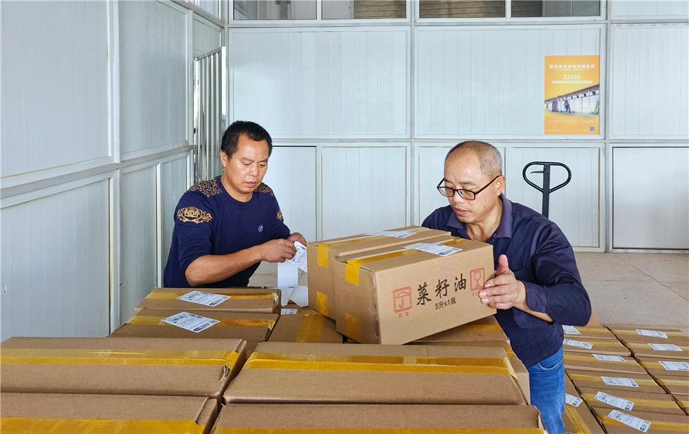 嘉欣粮油线上销售渠道的畅通发展,也让线下负责打包发货的工作人员忙得不亦乐乎。在嘉欣粮油仓库内,50多岁的郑裕安和工友正忙着贴快递单、搬运装车等,干劲十足。“平时多的时候,日发货量能达到1万多单。”嘉欣粮油仓库工作人员郑裕安开心地说,“现在虽然比以前忙很多,但工资比两三年前高一倍左右。”