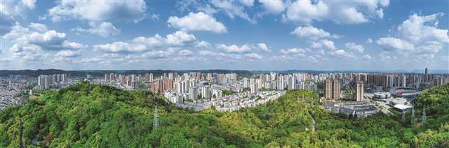 绿树环绕的大足城区 摄/瞿波