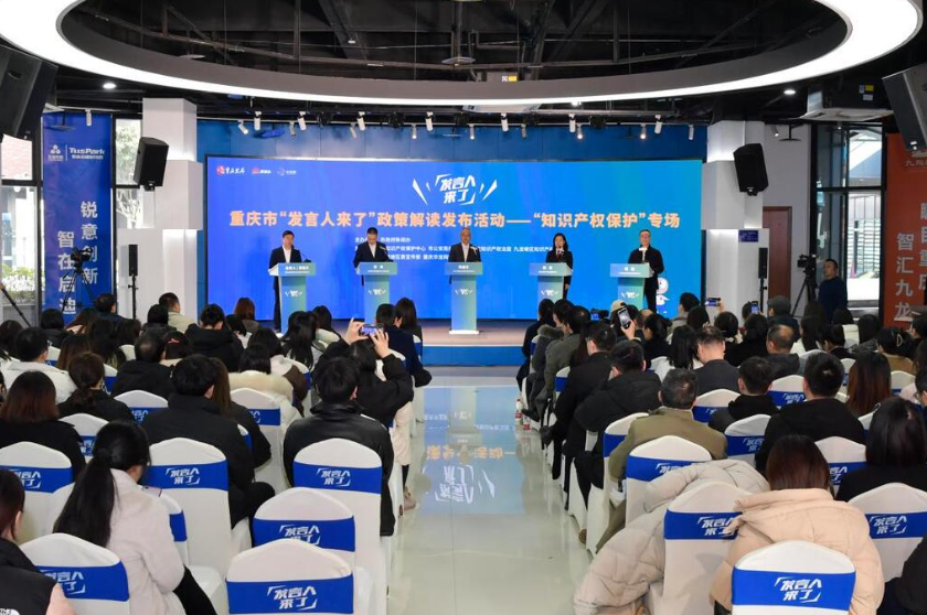 重庆市“发言人来了”政策解读发布活动——“知识产权保护”专场发布会现场。九龙坡区市场监管局供图