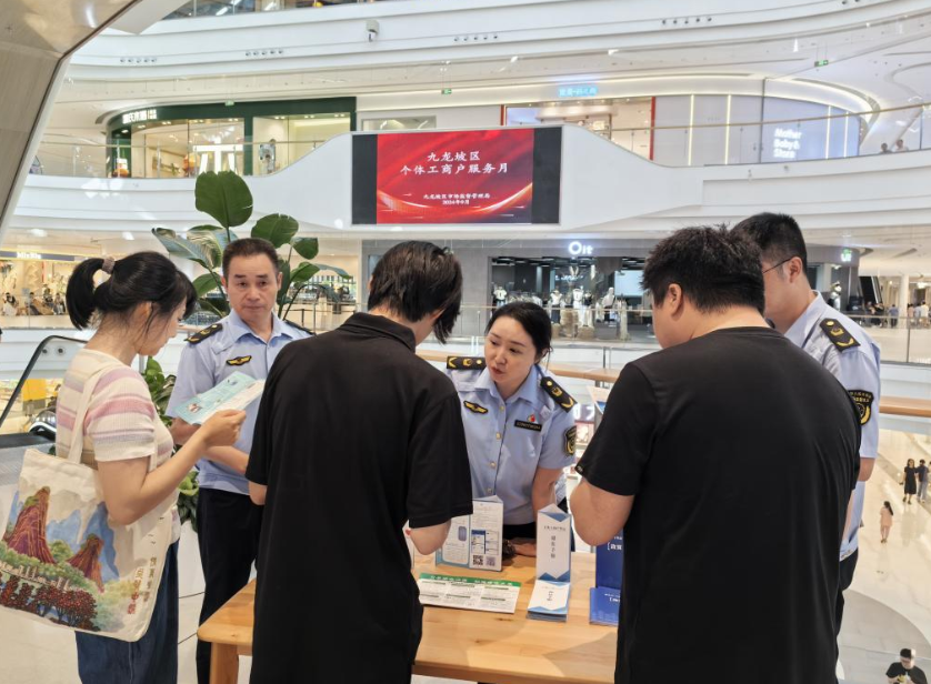 九龙坡区市场监管局工作人员开展扶持个体工商户政策宣传。九龙坡区市场监管局供图
