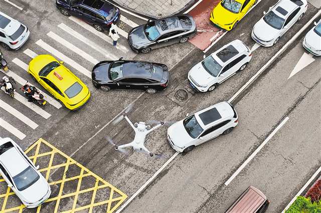 “以往,对于凤天大道这样的交通干道,违停治理往往依赖执法队员巡逻或市民举报,耗时耗力,且存在视觉盲区。”沙坪坝区城市管理局设施运行专班负责人戚晓亮告诉记者,如今搭载着高清变焦摄像头的无人机如同“空中鹰眼”,巡查半径长达5公里,不仅能快速抵达拥堵点位,还能在空中悬停取证,既高效又全面。“每天从早晨6点到晚上10点,无人机启动自动巡航模式,覆盖整个凤天大道。”戚晓亮说。