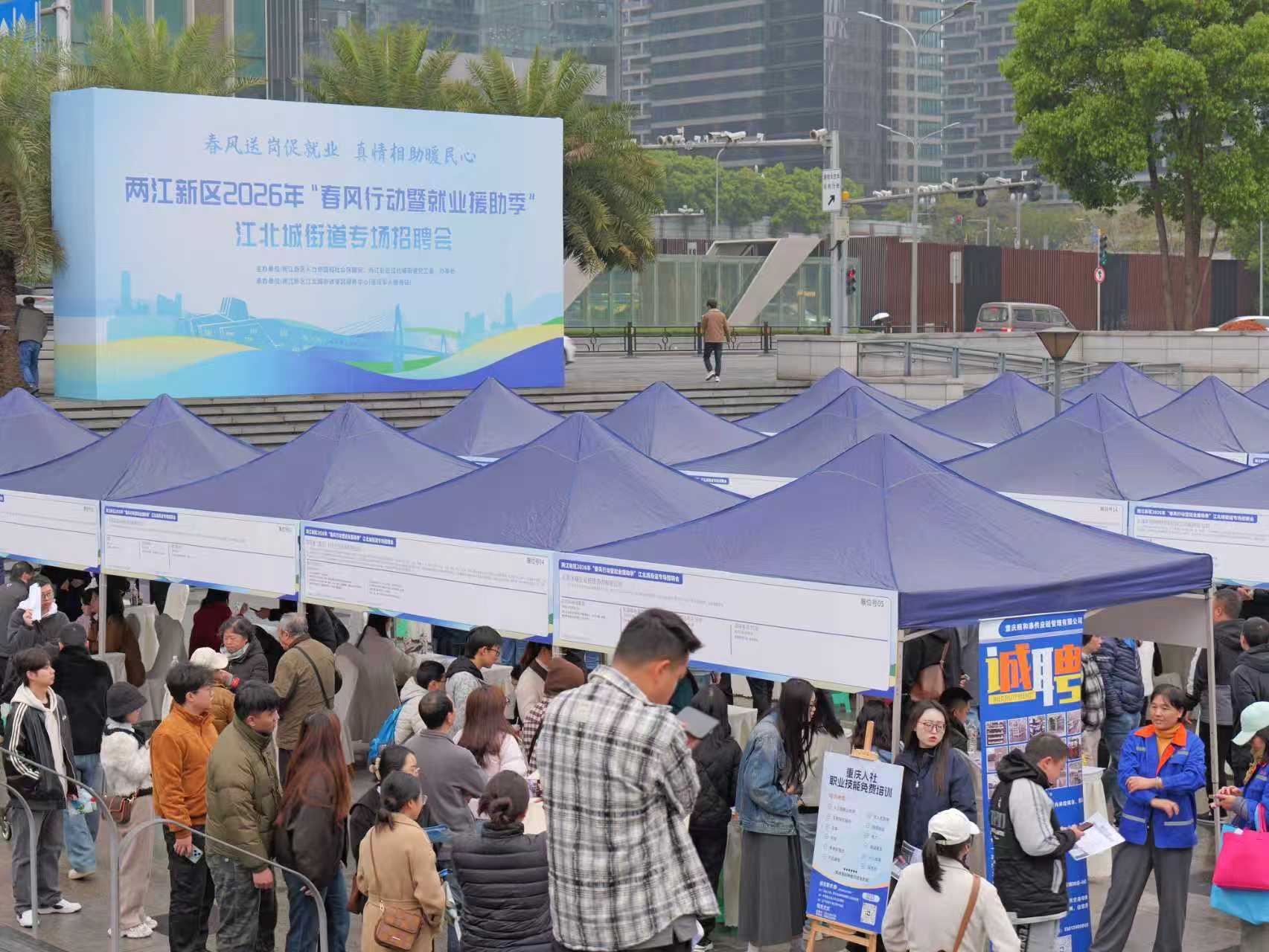 为深入贯彻落实稳就业、稳市场的决策部署,精准对接企业用工需求与群众求职期盼,3月19日,由两江新区人力资源和社会保障局、两江新区江北城街道主办的“两江新区2026年‘春风行动暨就业援助季’江北城街道专场招聘会”举行。