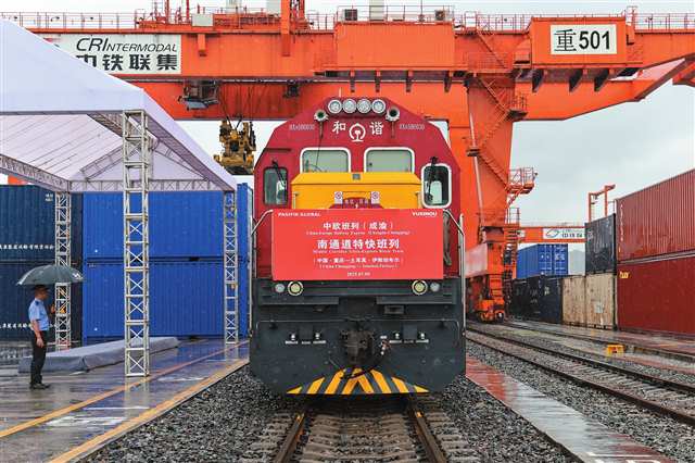 中欧班列(成渝)南通道特快班列,从沙坪坝区团结村中心站出发。