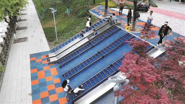 河堤改造后市民在休闲玩耍