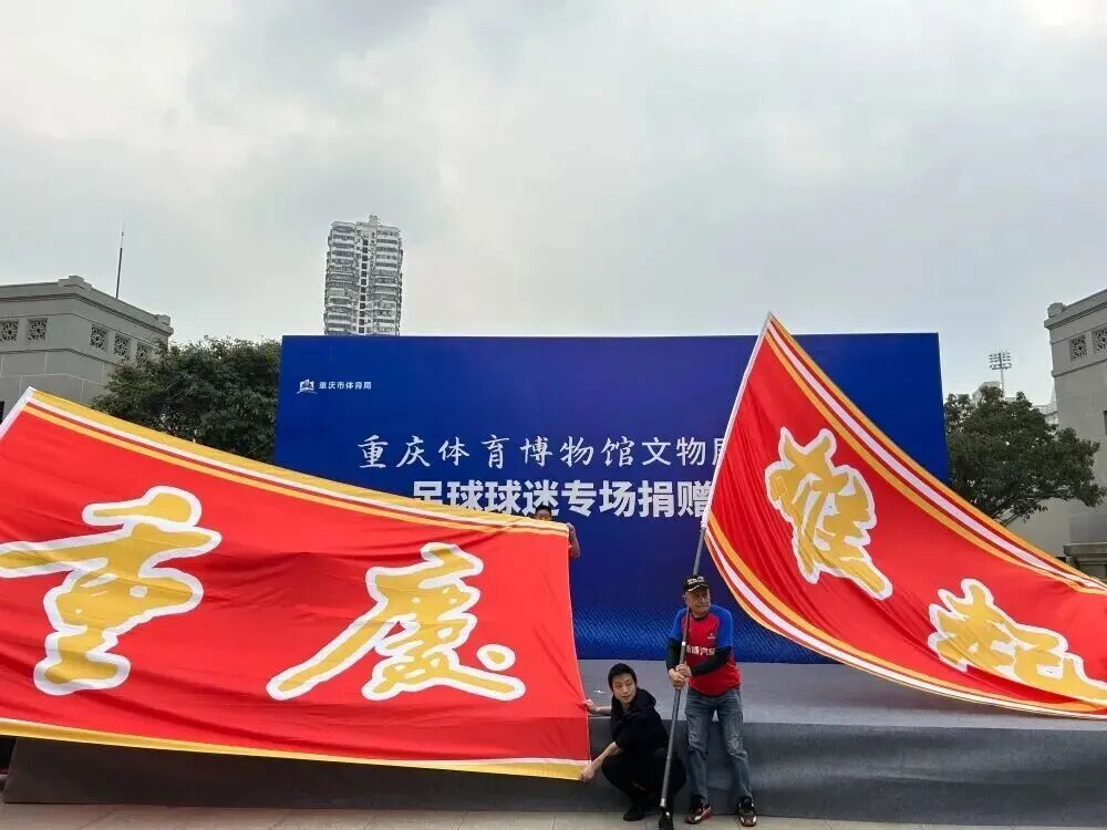 【重庆球迷捐赠“重庆雄起”旗帜现场】图源:体育重庆