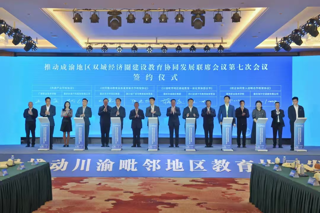会上,四川省广安市教育和体育局与重庆市沙坪坝区教委、广安职业技术学院与重庆长安汽车股份有限公司、南充职业技术学院与重庆海尔空调器有限公司、川渝毗邻地区教育主管部门代表分别签订了合作协议。