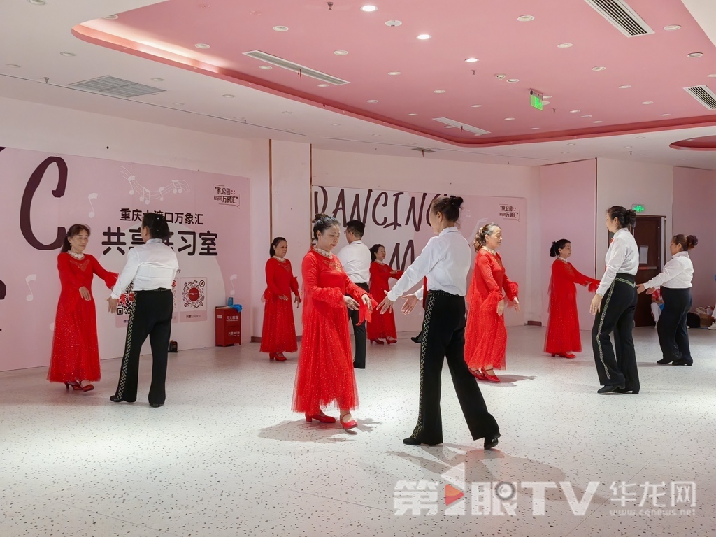 万象汇共享练习室内,社区居民正在跳舞。第1眼TV-华龙网 陈雨 摄