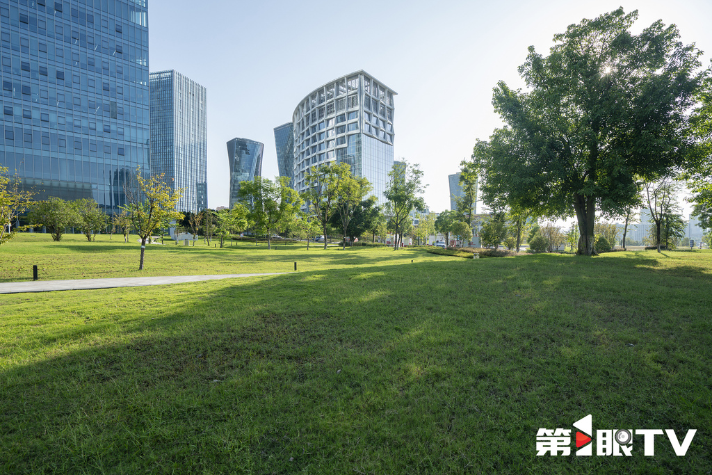 建设绿色低碳的美丽城市,海绵城市理念也不断落地。在渝北区仙桃数据谷,现代建筑与自然景观相融合,构建出独具特色的海绵城市生态系统,让园区像海绵一样会“呼吸”,一张一吸之间,排放、吸纳雨水,循环利用。