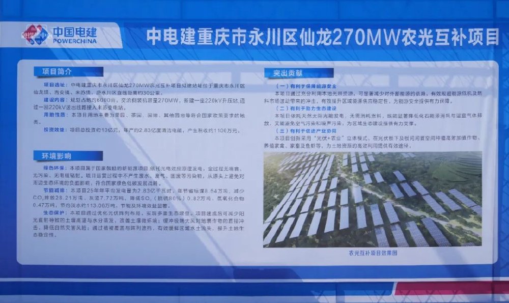 8月19日,总投资42亿元的中电建重庆市永川区仙龙270兆瓦农光互补项目开工,暨人工硐室压储项目正式开工。