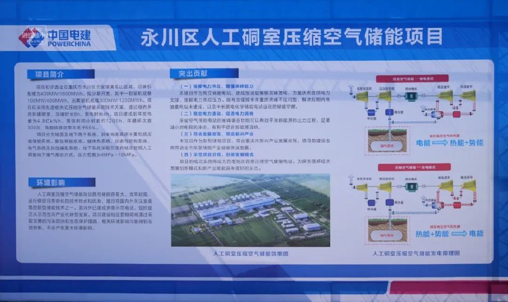 永川区人工硐室压缩空气储能项目是西南地区首个推动电力转型压缩示范项目。该项目拟装机规模为400兆瓦/1600兆瓦时,总投资32亿元,规划分两期开发。建成后,年发电量可达4.8亿度,可有效缓解用电高峰和低谷期间的电力供需矛盾,强化永川电网调峰能力与电力保供水平。