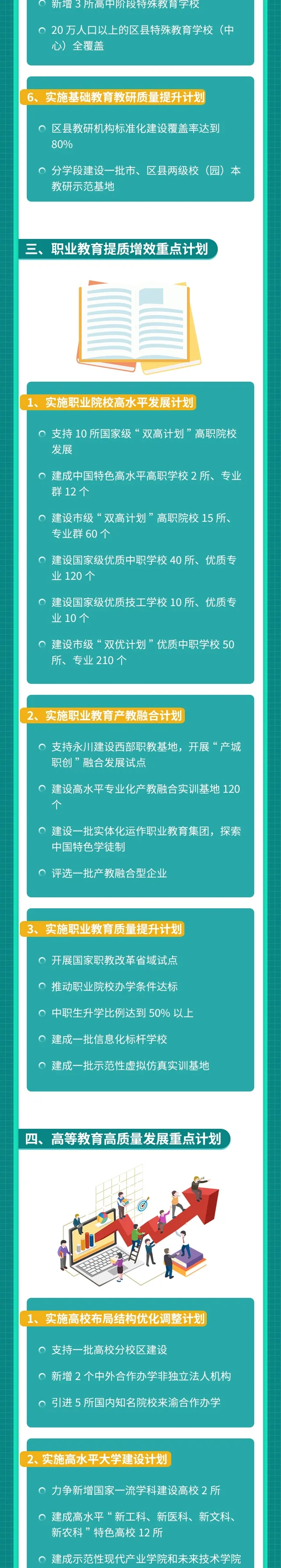 日前,重庆市人民政府印发《重庆市教育事业发展“十四五”规划(2021—2025年)》(下称《规划》),就实施科教兴市和人才强市战略,加快推进教育现代化、建设教育强市、办好人民满意教育等方面提出规划与任务要求。