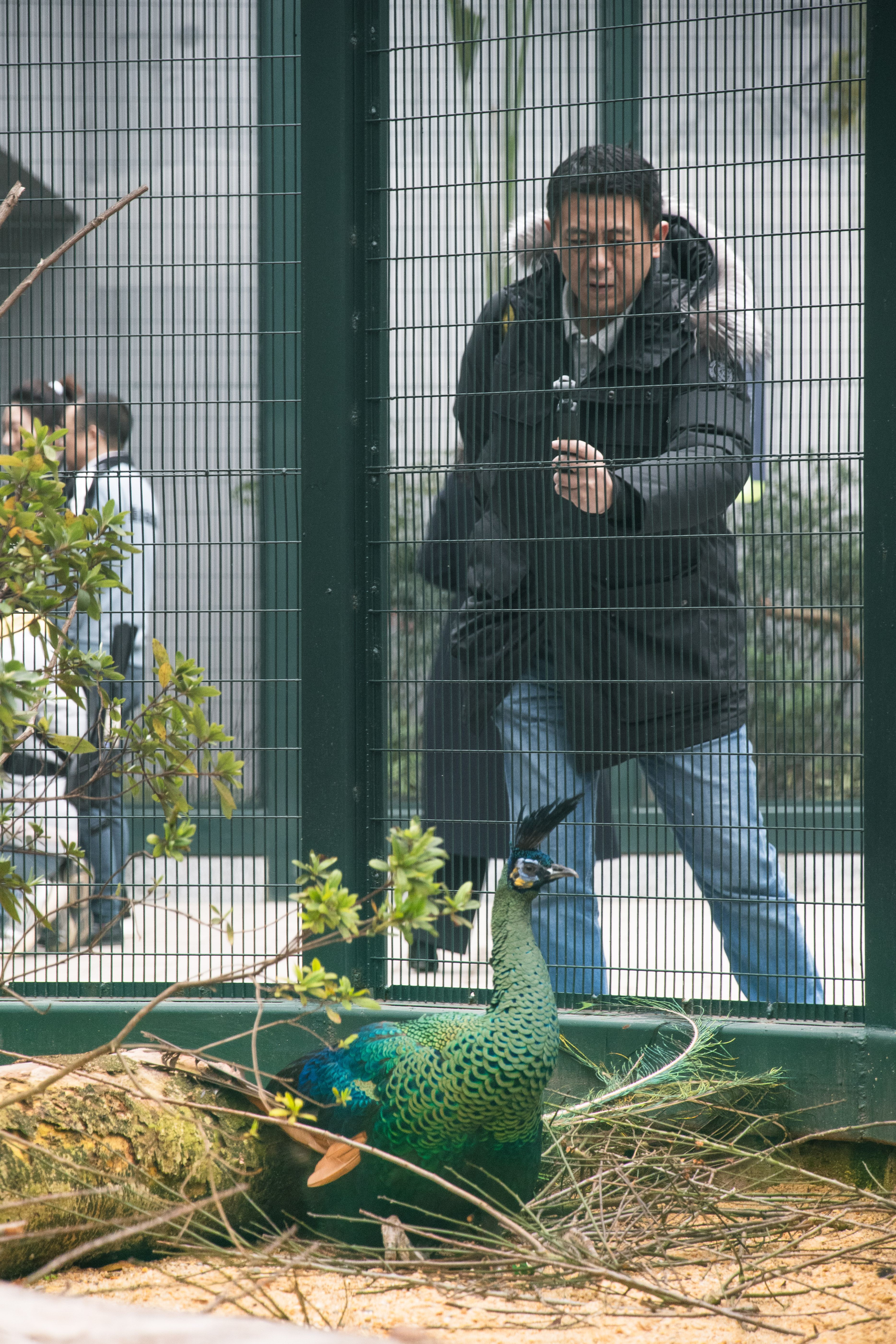 2月10日,重庆动物园鸟类展区,游客在拍摄国家一级保护动物绿孔雀。记者 李雨恒 摄