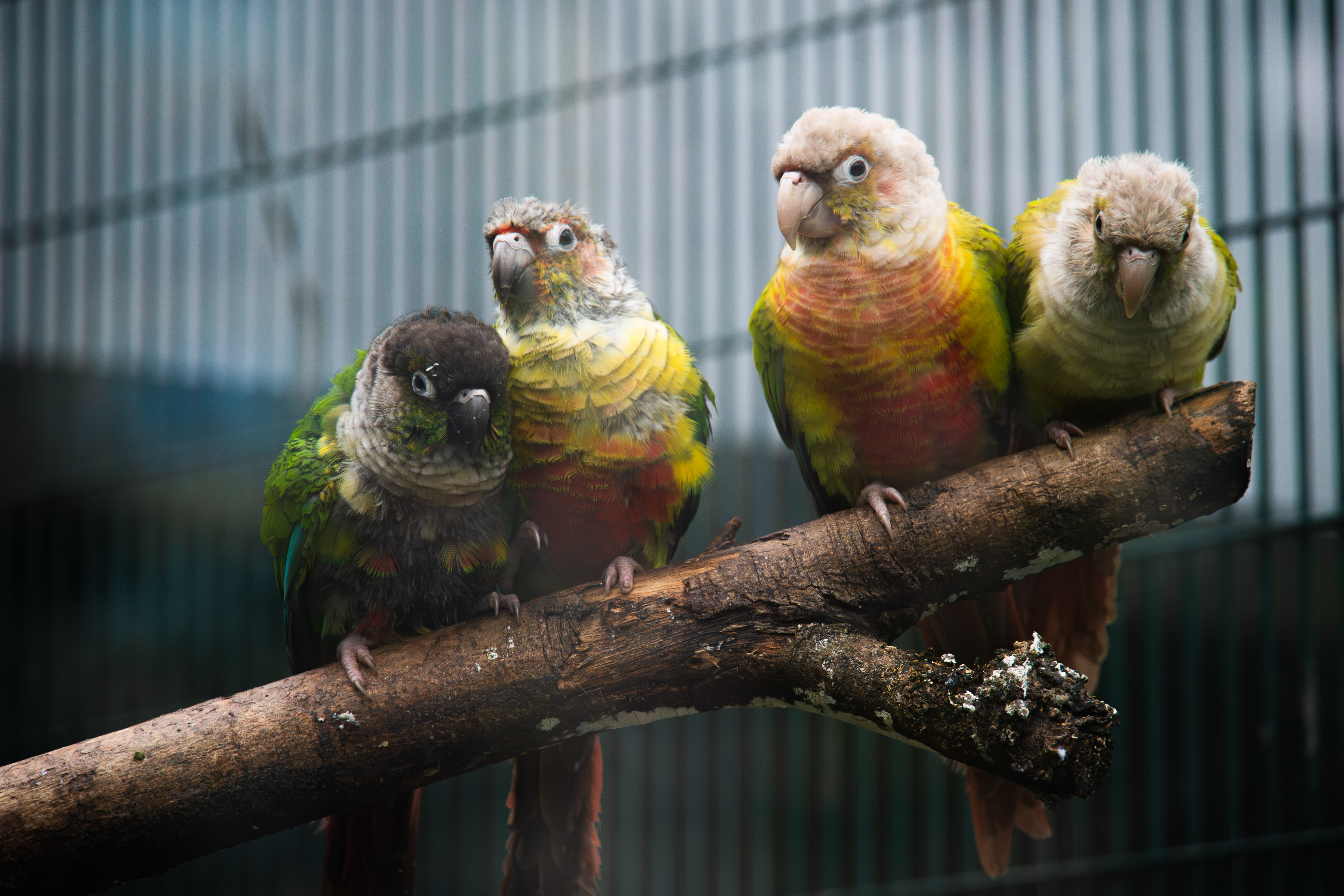 2月10日,重庆动物园鸟类展区,绿颊锥尾鹦鹉们站成一排。记者 李雨恒 摄