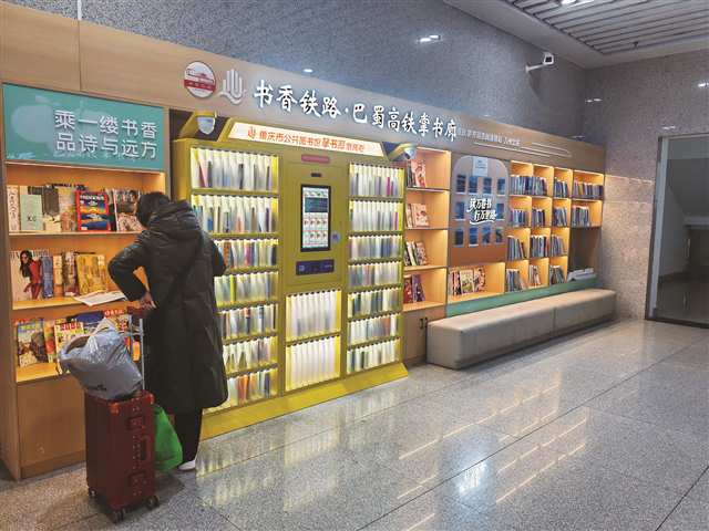 春运首日,重庆各大高铁站人流如织。站内显眼之处,设计小巧精致,色彩明快活泼的“掌书廊”自助借阅柜格外惹眼。柜内的系列“巴·掌书”开本小巧、便于携带,内容丰富多样,涵盖了文学经典、科普读物、生活百科等多个类别。候车之余,随手抓起一本读物,在浓郁的书香中打发闲暇时光,成为不少旅客的选择。