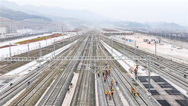 1月6日,南岸区,重庆东站施工现场,一片热火朝天的繁忙景象。