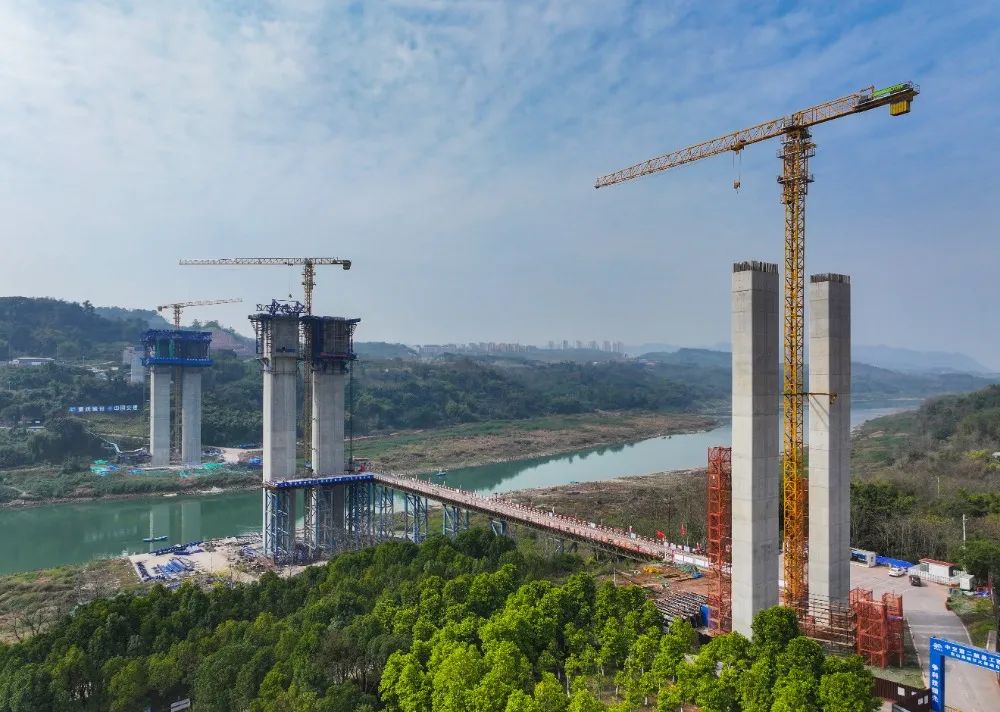 目前,宝山嘉陵江大桥项目主桥主墩已封顶,已全面转入上部结构施工,正在进行主桥箱梁挂篮悬臂施工。
